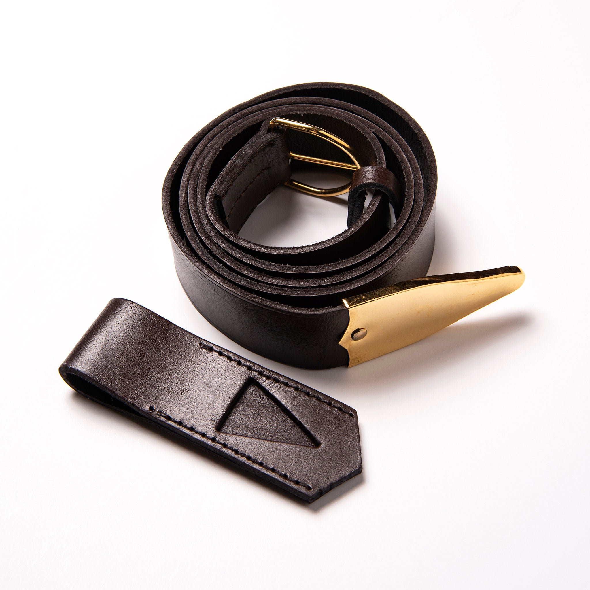 Crafted from the finest quality dark brown leather, this Knight Templar Belt & Frog exudes timeless elegance. The belt features a polished brass buckle for precise adjustability and a leather frog end finishing, making it the perfect accessory to complement your KT regalia at lodge dinner parties, functions, meetings, and festivals.