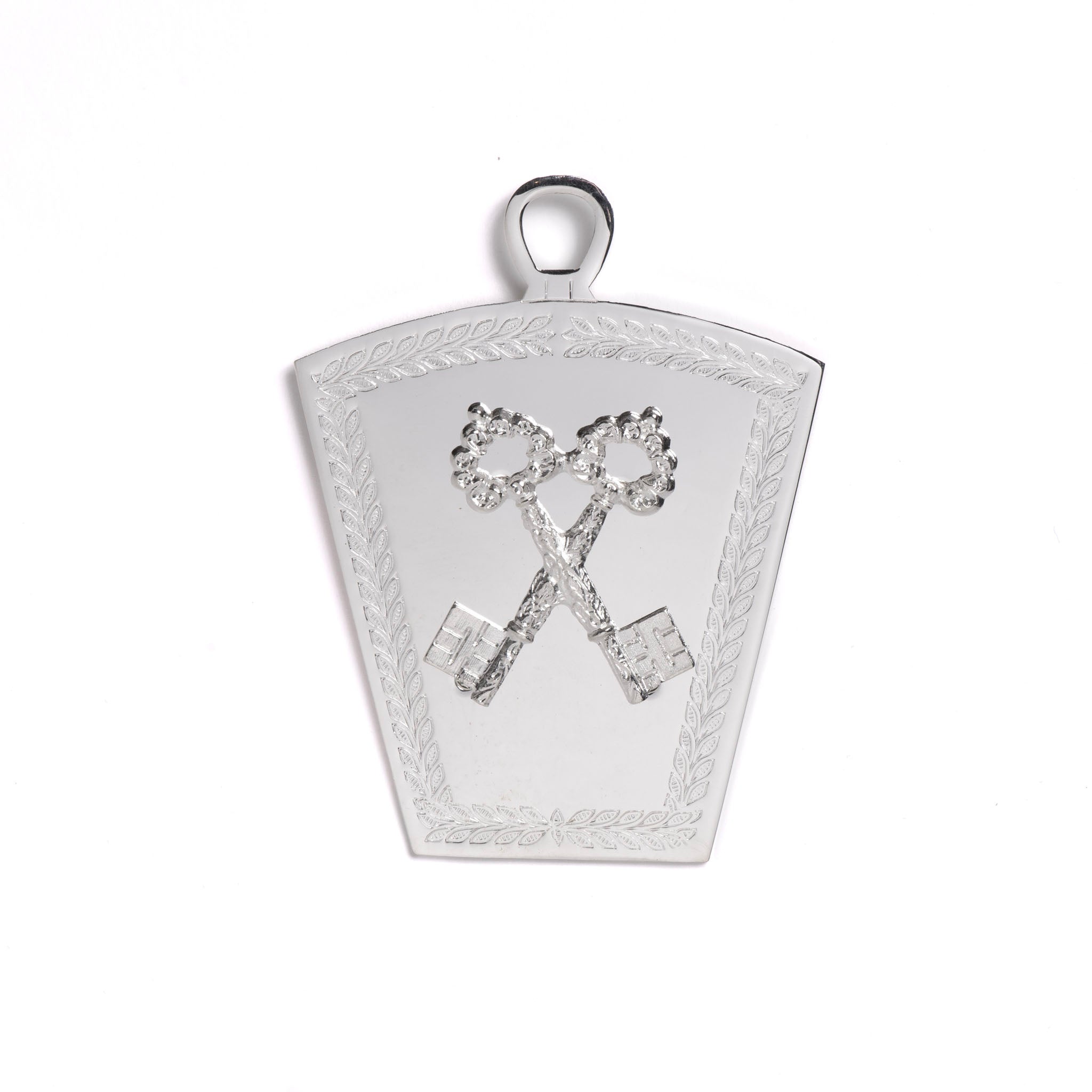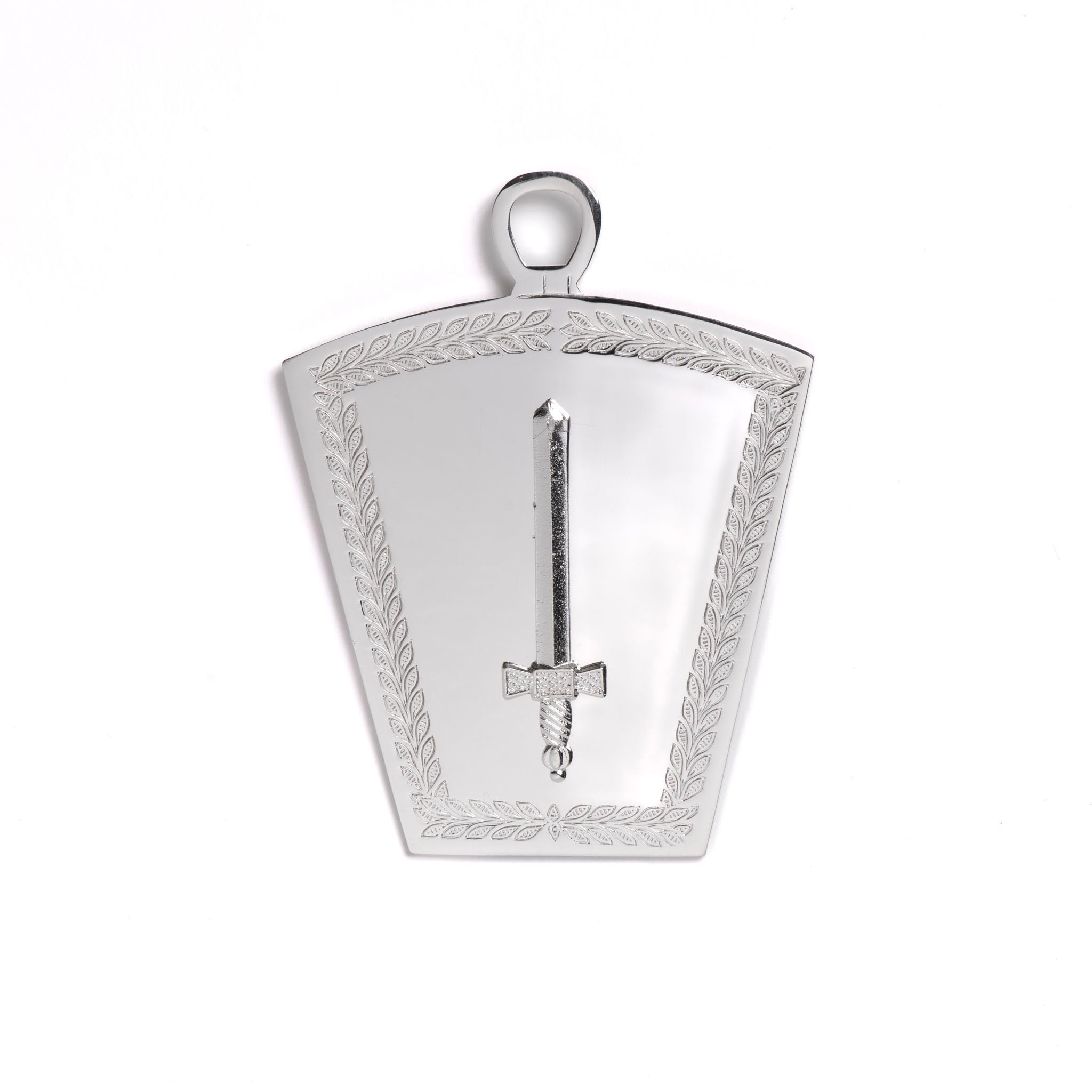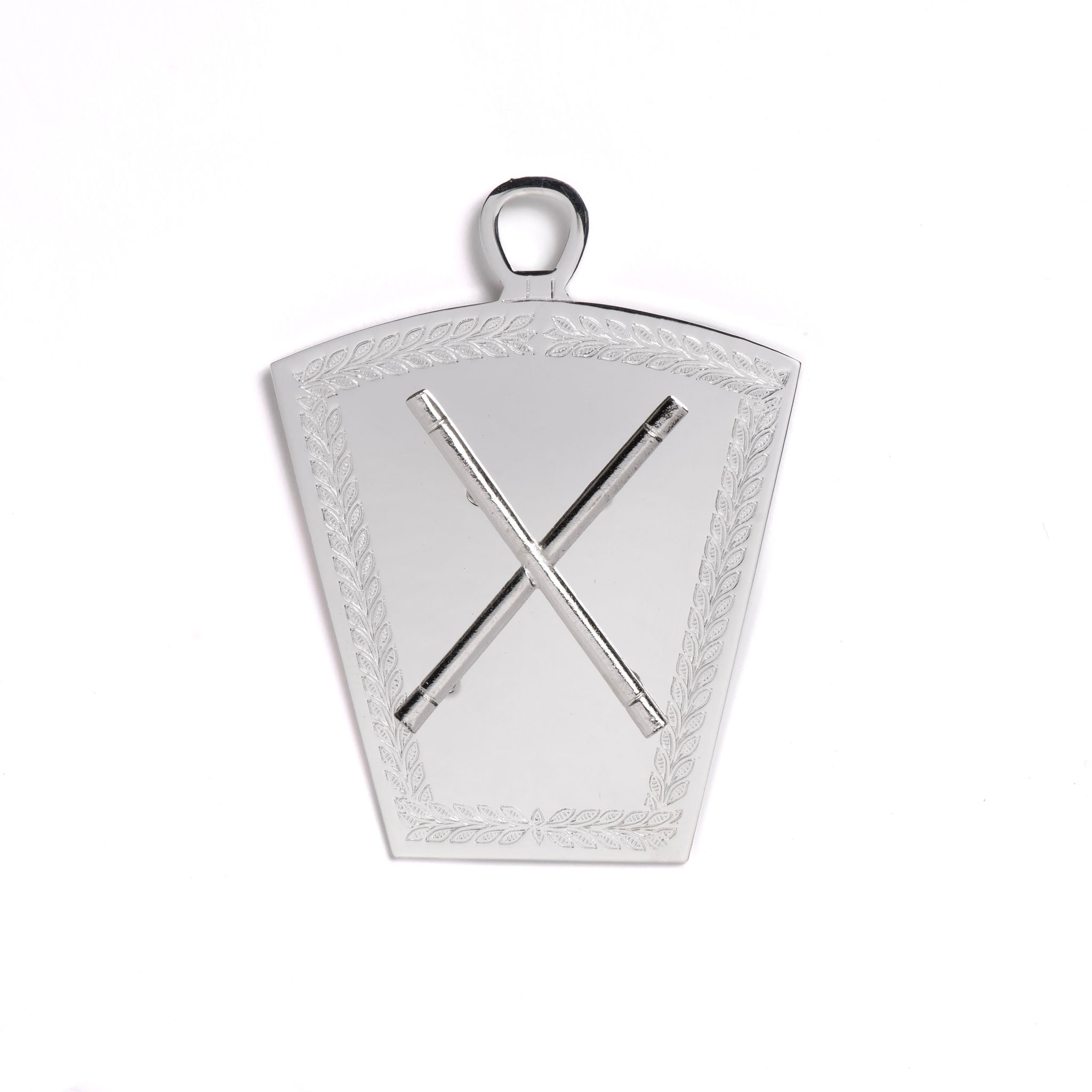 The Mark Officers Collar Jewel is worn by holders of roles and offices within the lodge. The jewel is suspended from the end of the Mark Officers Collar or Mark Past Master Collar (linked below).