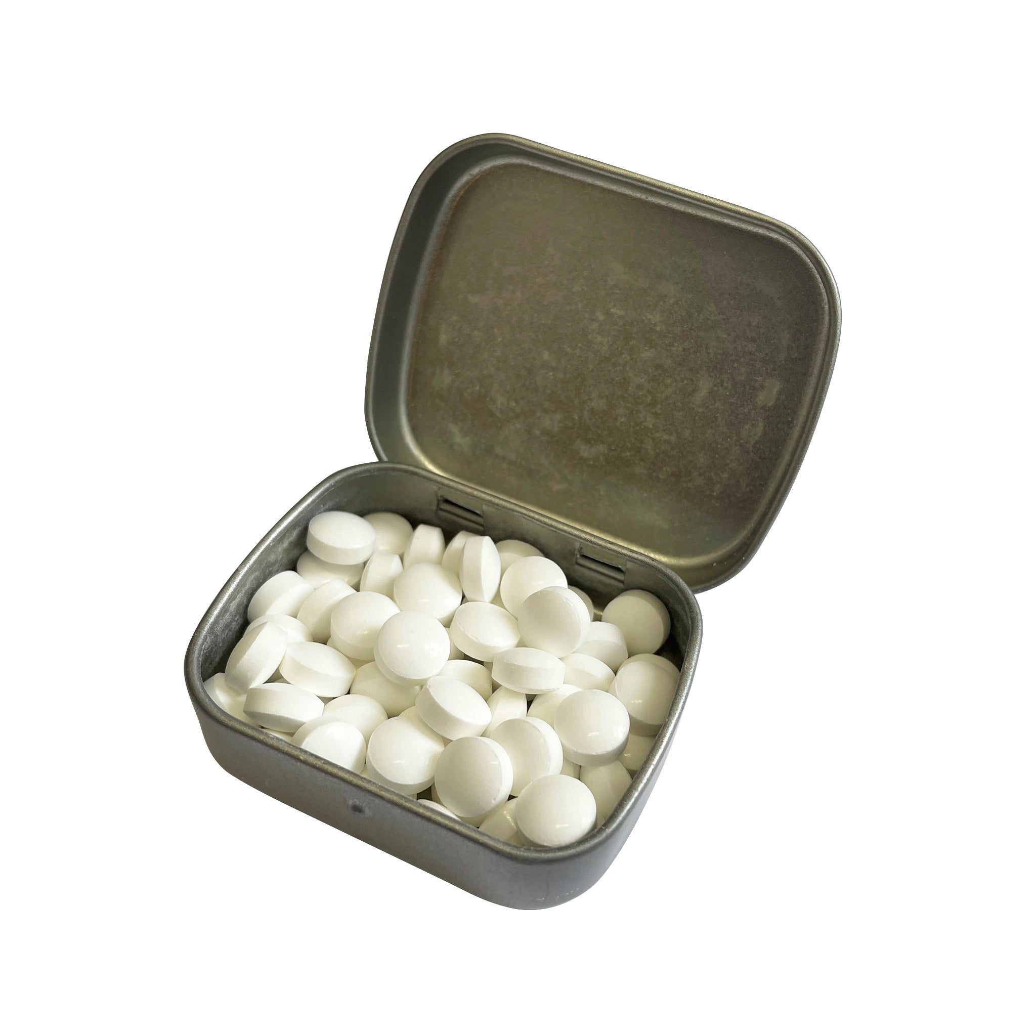 A handy sized tin of mini mints, displays the Freemasons' Hall logo.