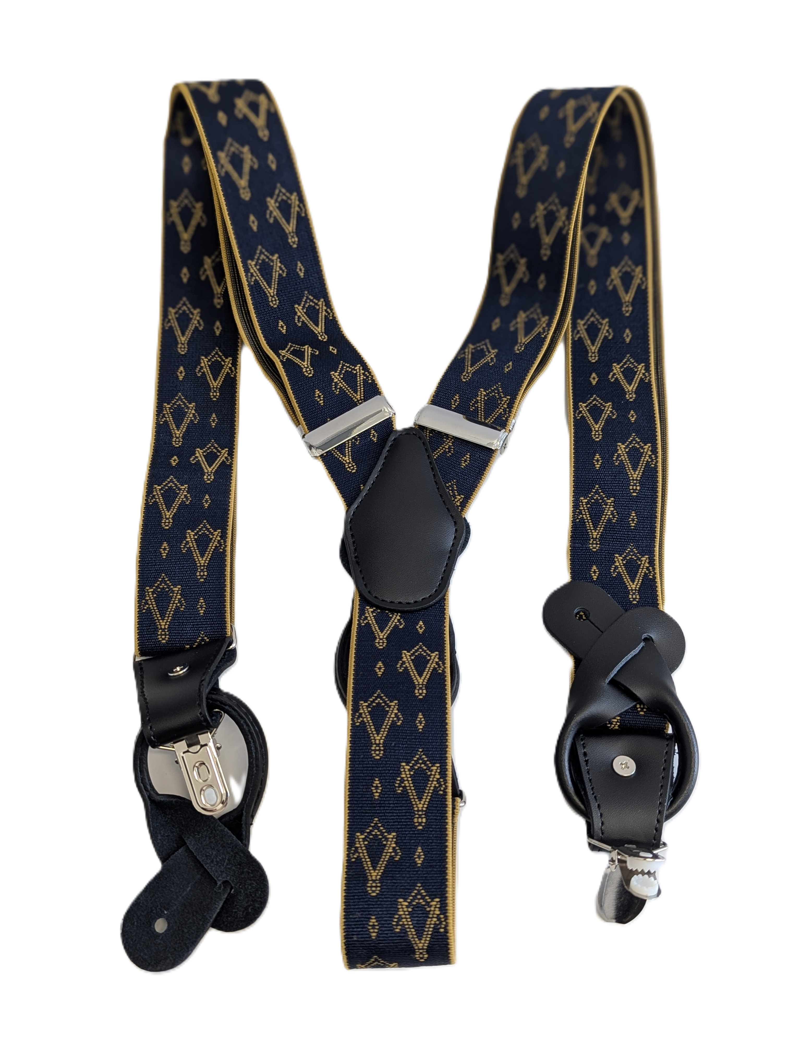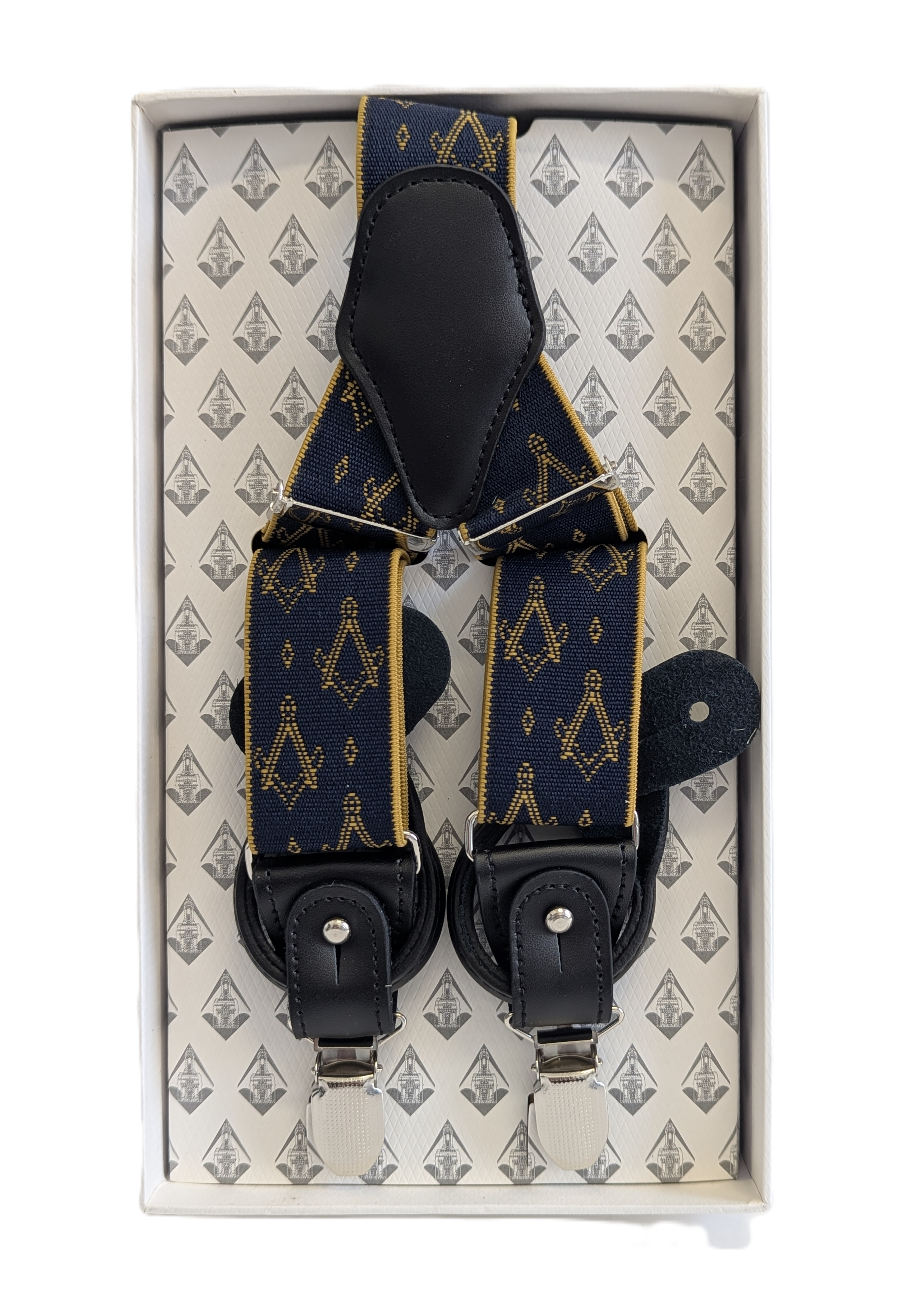 These premium Y-shape Square & Compasses Masonic Braces, are designed with a one-size-fits-all approach, they are fully adjustable, ensuring a tailored fit for every individual. Available in black or blue. Unisex