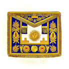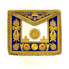 Grand Master (and Pro Grand Master), present and past. As the Grand Officers, but with the blazing sun in gold in the centre, and on the edging the pomegranate and lotus with the seven-eared wheat at each corner and also on the fall, all embroidered in gold, and with the fringe of gold bullion.