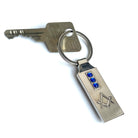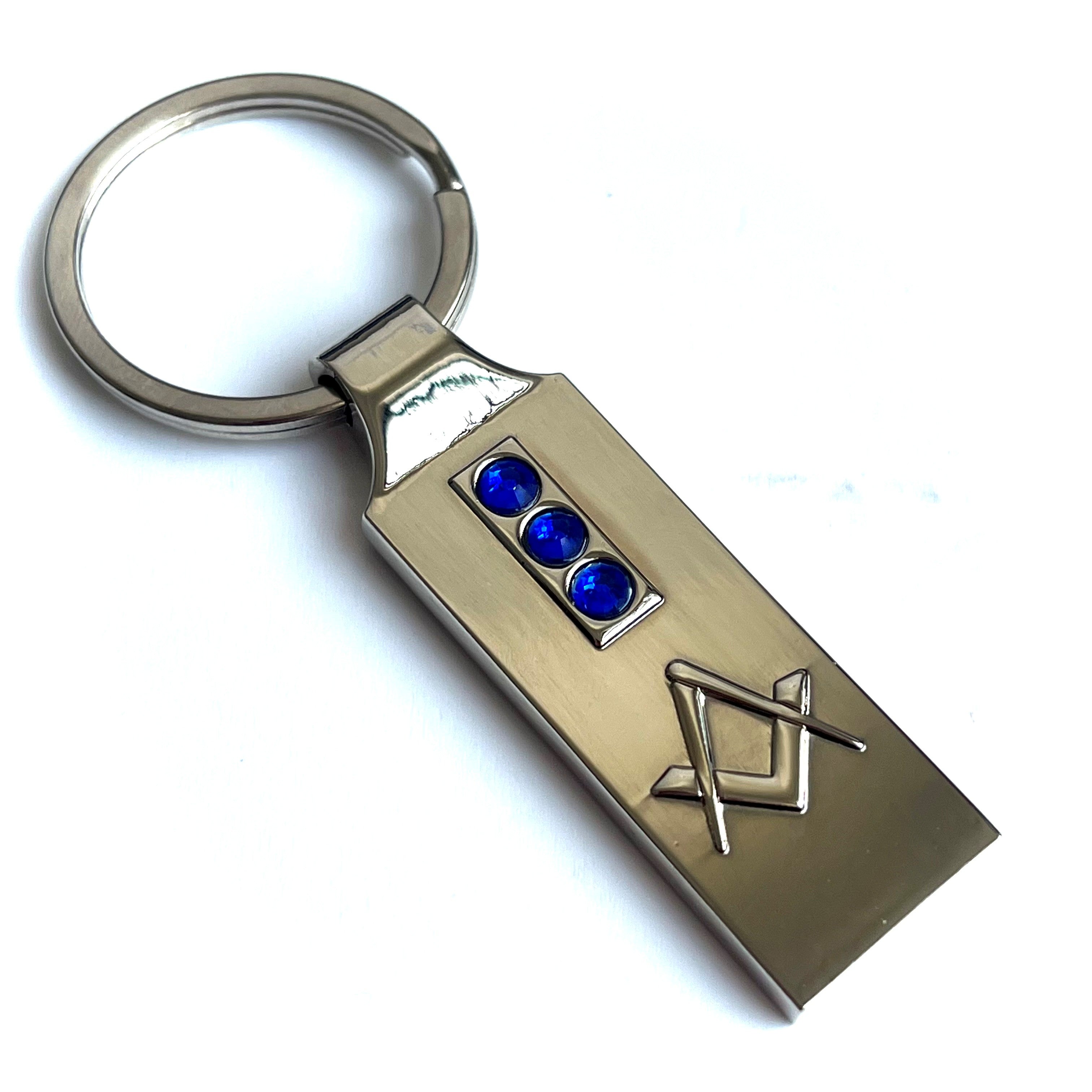 This shiny silver coloured metal key ring features a Masonic square and compasses design embellished with 3 blue crystals. Perfect gift or souvenir for a Freemason.