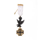 The Knight of Holy Scepulchure Commander Breast Jewel crafted with fine ribbon, metalwork, and gilt plating, featuring a stickpin fitting on the back. Using only the finest materials with a high end polish.