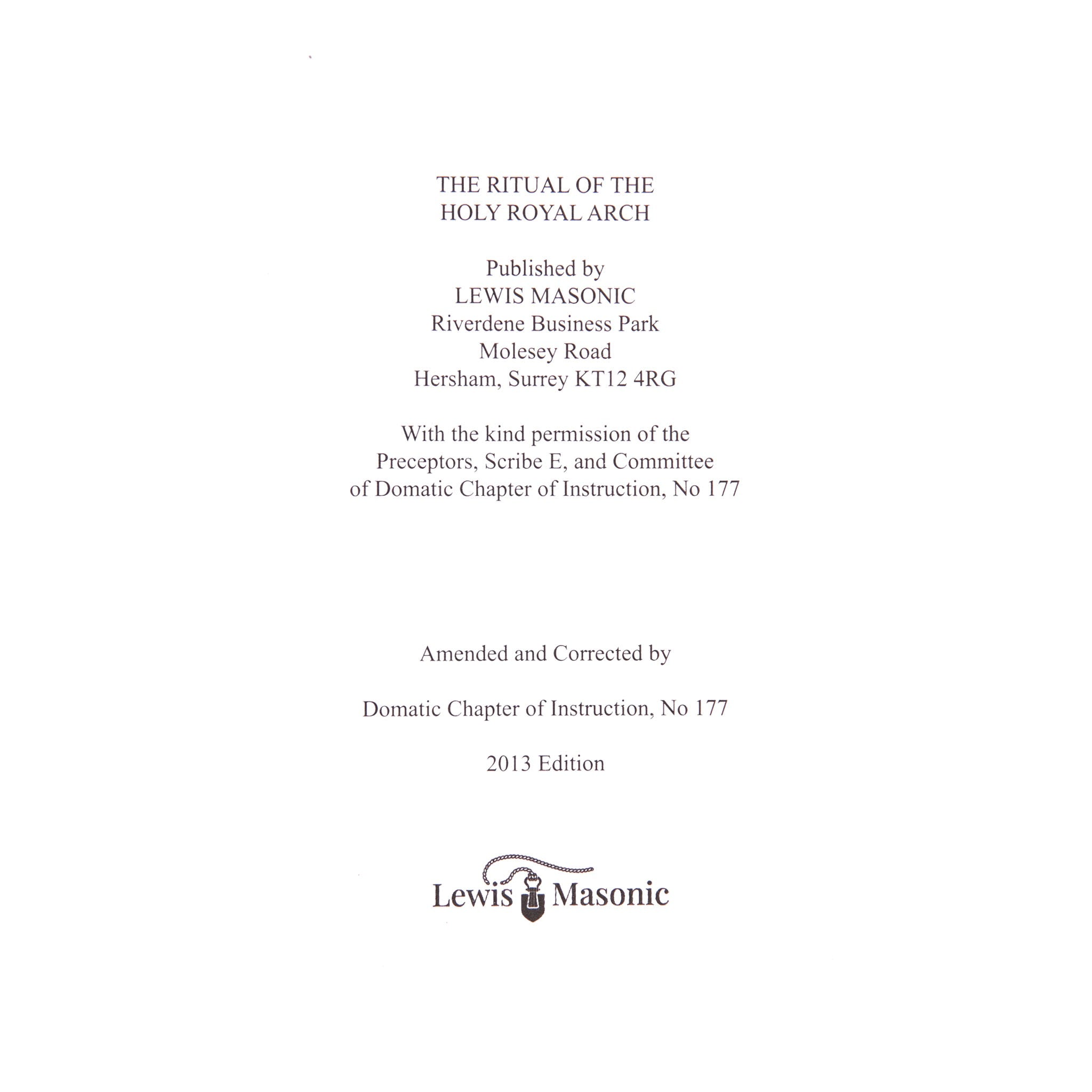 This is the Domatic Royal Arch Ritual as taught in the Domatic Royal Arch Chapter of Instruction. Completely updated to incorporate the necessary amendments and additions following the convocation of Supreme Grand Chapter on the 10th of November 2004. This volume includes both mandatory changes to both the Address after Exaltation and The Historical Lecture plus the new "permissive Alternative" versions of the Symbolical and Mystical Lectures alongside their traditional versions.