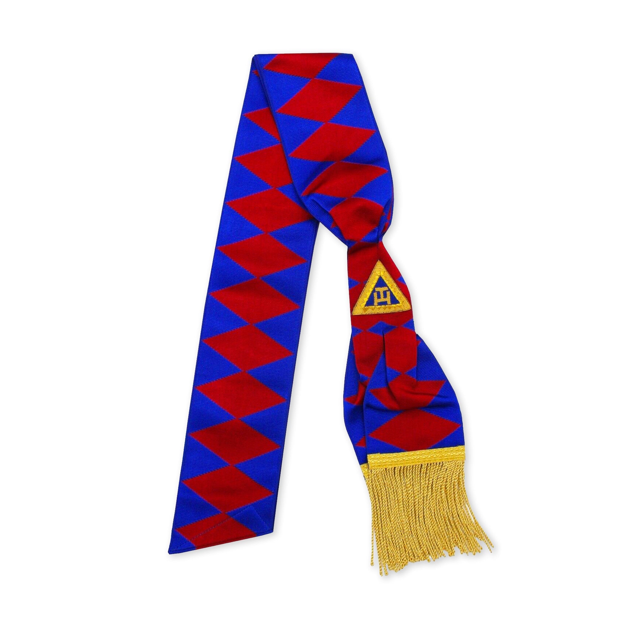 Provincial and London Chapter Rank Sash has blue and red tassels with a blue triangle and is worn by those who have been awarded honours before having been installed as First Principal.